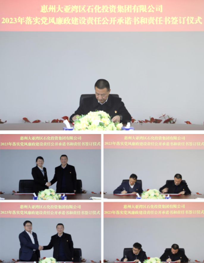 為持續(xù)加強黨風廉政建設,進一步筑牢廉潔自律防線。1月18日,惠州大亞灣區(qū)石化投資集團有限公司舉行2023年落實黨風廉政建設責任公開承諾書和責任書簽訂儀式。公司管理層成員、紀檢干事、中層干部、派駐下屬企業(yè)干部、監(jiān)察審計部工作人員、采購工作人員、財務工作人員、工程工作人員參加簽訂儀式。